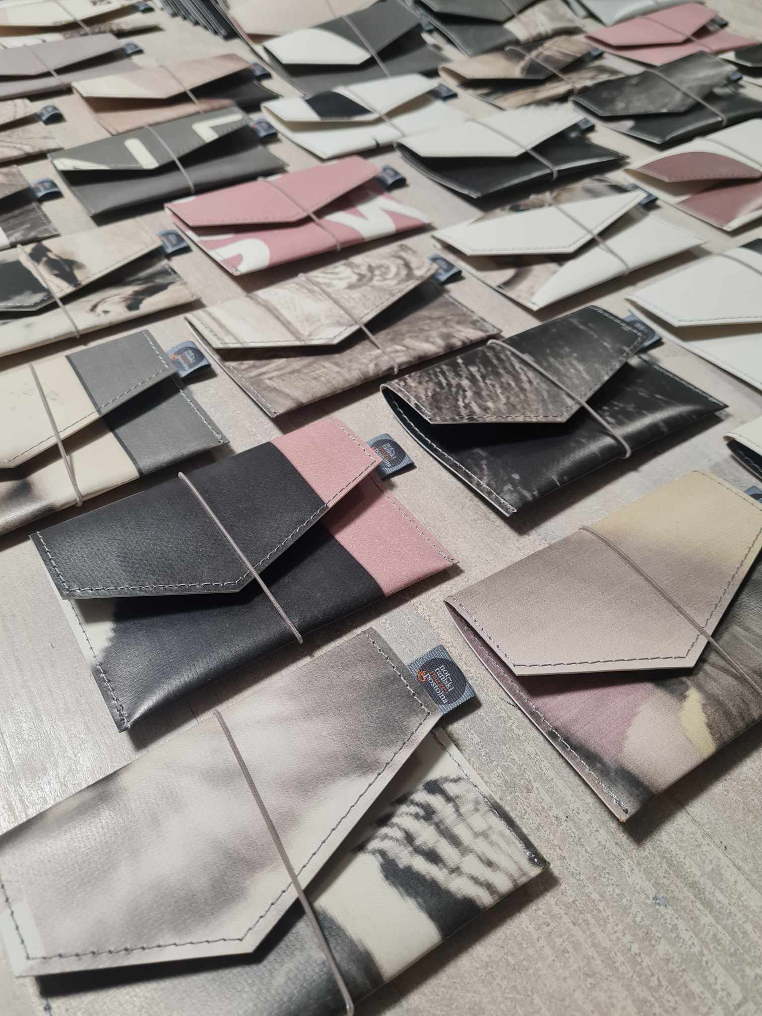 Unikaten izdelek, recikliran iz oglasnih panojev, ki so nekoč krasili fasado naše stavbe. Namesto, da bi cerade pristale na deponiji ali v sežigalnici, smo jih skrbno shranili in jim dali drugo namembnost. V sodelovanju s slovensko nevladno organizacijo Destilator studio, ki je poskrbela za avtorsko oblikovanje in ročno proizvodnjo, smo izbrali trajnostno rešitev, ki je lahko zgled lokalnega krožnega gospodarstva ter navdih in spodbuda drugim organizacijam in podjetjem.