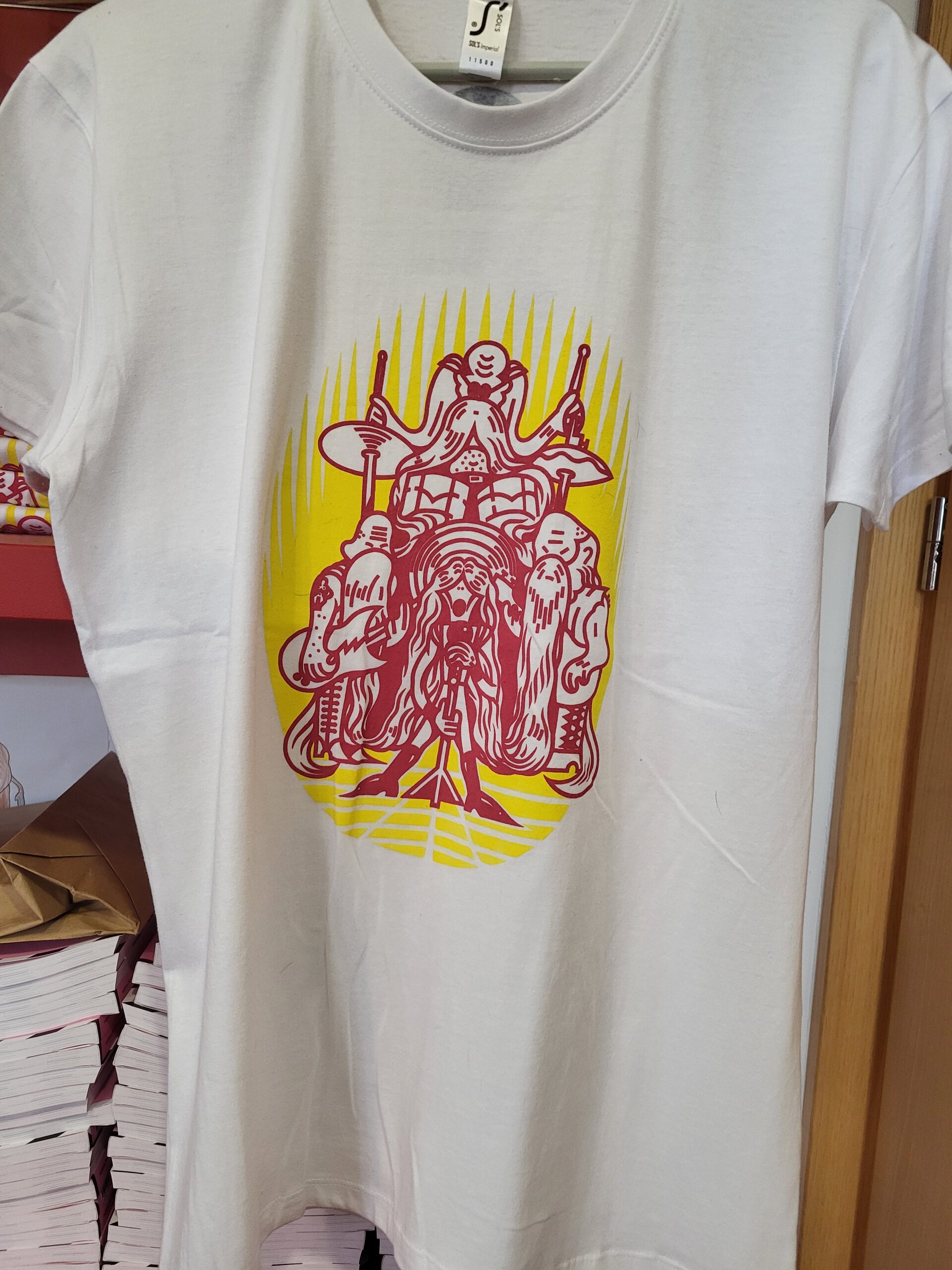 Majica je na voljo z ilustracijo v rdeče-modri ali rdeče-rumeni barvi, v velikosti S, M, L, XL in XXL.